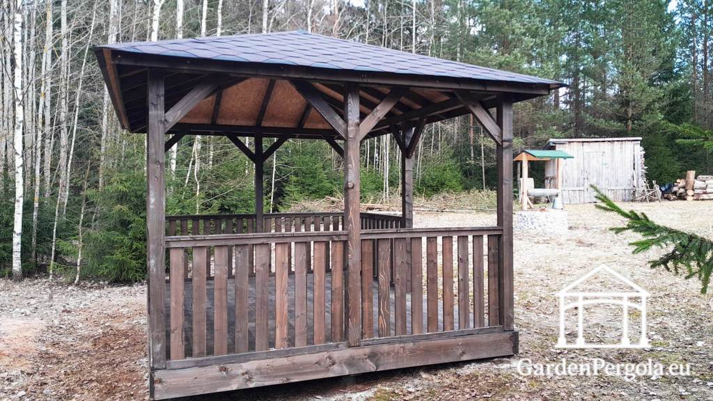 Butik / Våra standard trädgårdspaviljonger i trä / 3x4m Mörkbrun trädgårdspaviljong